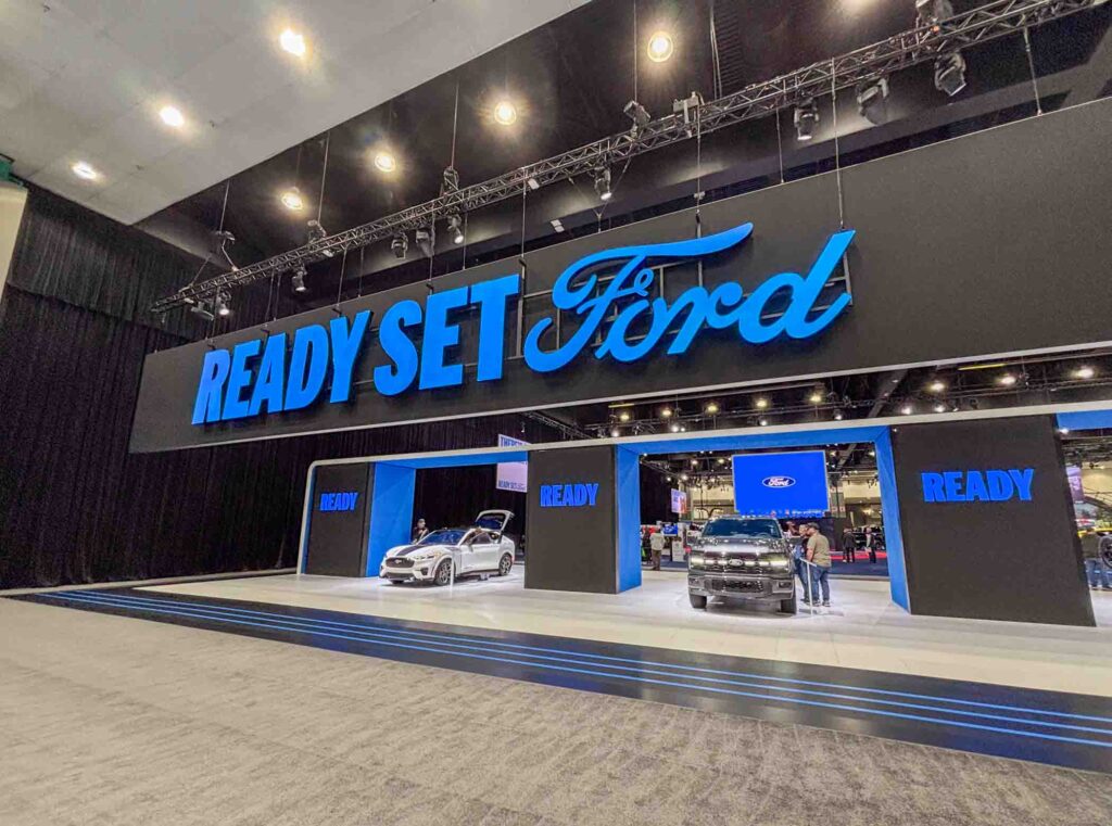 From our perspective at FGPG, the ride wasn’t just a showpiece; it was a full-on experiential production. Building that terrain indoors demands exact engineering, reinforced staging, and power delivery for lighting, hydraulics, and safety systems. And Ford didn’t stop with the Bronco. Their booth also featured new Mustangs, rally-inspired trucks, and clever design touches (like using reusable water bottles to showcase paint finishes). These details don’t just look good — they communicate brand identity across every step of the experiential journey.