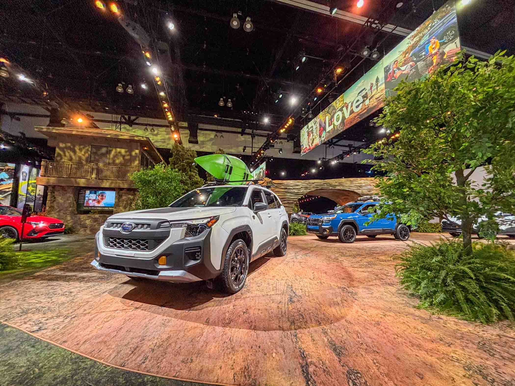 Beyond the product reveals, many brands leaned fully into community and hospitality, creating activations that felt personal, thoughtful, and deeply connected to their identity. Volkswagen, for example, paired an array of new vehicles with the show-stopping “Hope on Four Wheels” — a 1977 VW Bus that survived recent wildfires. Positioned next to the newest I.D. Buzz and on loan from its owner (with a future display at The Petersen Automotive Museum), the display blended legacy, sustainability, and storytelling in a way that felt both timely and meaningful. Subaru took a similarly immersive approach with “Powered by Love. Long Live Our National Parks,” highlighting millions in conservation contributions while showcasing the enduring reliability of its vehicles. Walking through a meticulously crafted wooded display, we were instantly transported to the Sierra Nevadas — a vivid reminder of how well-designed activations can make attendees forget they’re in a convention center.