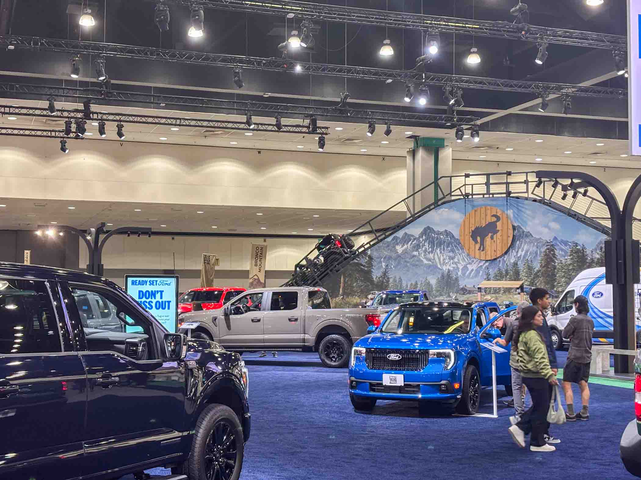 From our perspective at FGPG, the ride wasn’t just a showpiece; it was a full-on experiential production. Building that terrain indoors demands exact engineering, reinforced staging, and power delivery for lighting, hydraulics, and safety systems. And Ford didn’t stop with the Bronco. Their booth also featured new Mustangs, rally-inspired trucks, and clever design touches (like using reusable water bottles to showcase paint finishes). These details don’t just look good — they communicate brand identity across every step of the experiential journey.