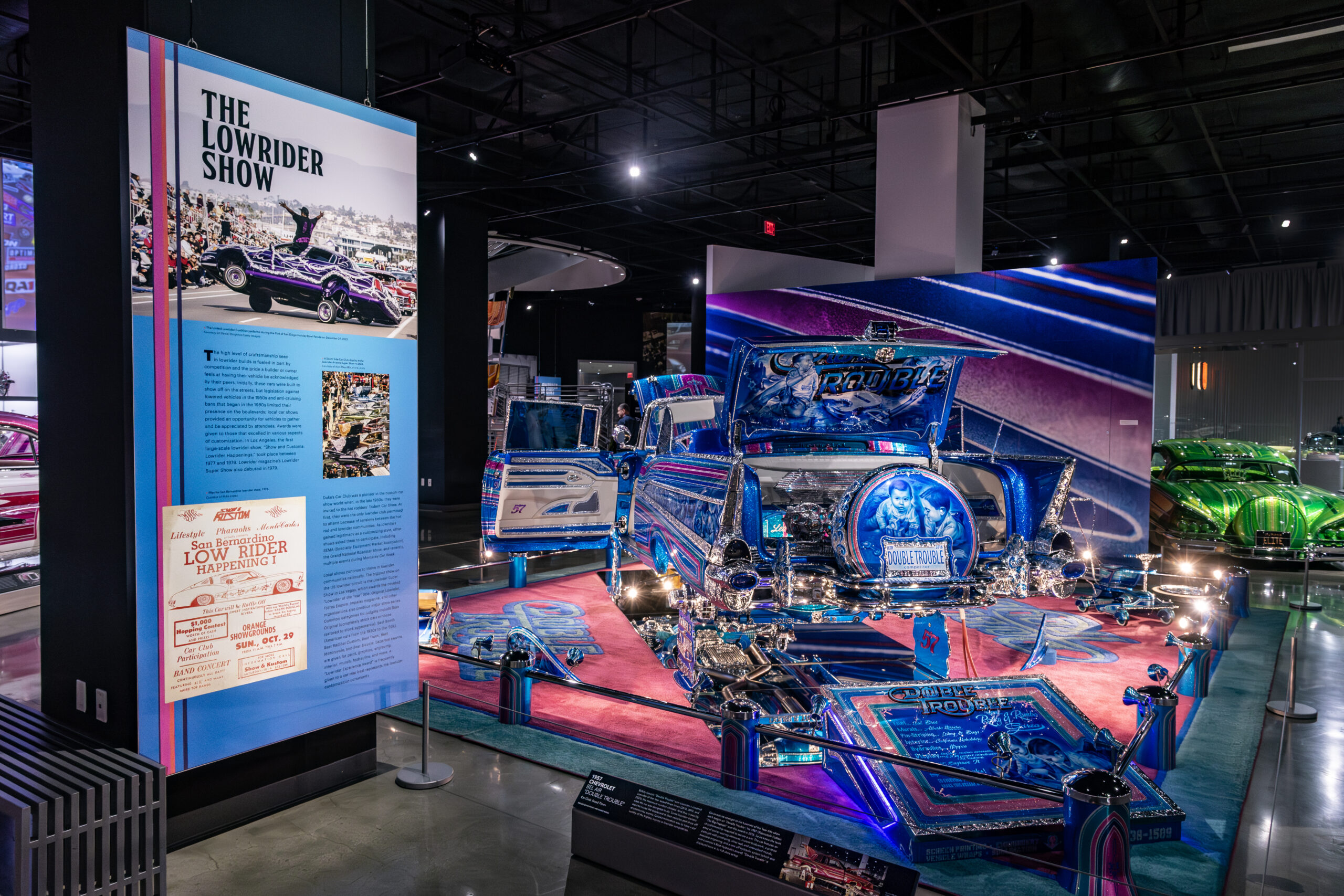 The museum wanted to create an unforgettable experience for visitors, showcasing the vehicles and the art and culture that make Lowriding unique. The exhibit had to honor the intricate design, engineering, and multi-generational craftsmanship involved in lowriders while utilizing the expansive space of the Mullin Family Grand Salon, the museum’s most significant exhibition space. This required a careful balance between maintaining the authenticity of lowrider culture and curating a modern, engaging experience for a diverse audience.